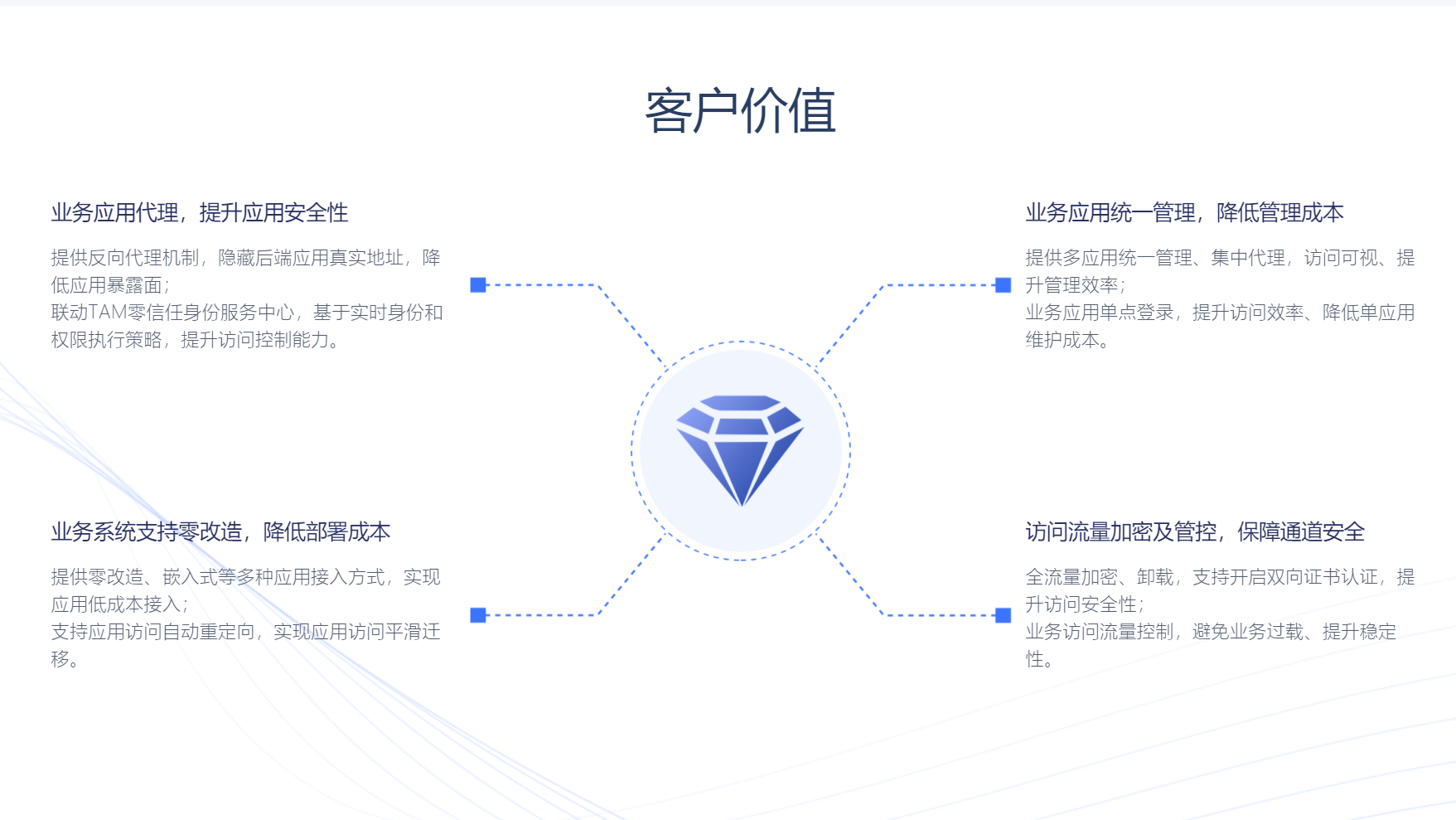 应用访问集中代理,隐藏应用真实地址,缩小暴露面。